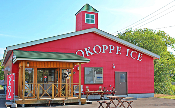 オホーツク海ラインを走る国道238号線沿い、興部市街地のホクレンスタンド横におこっぺアイスの直売店があります。